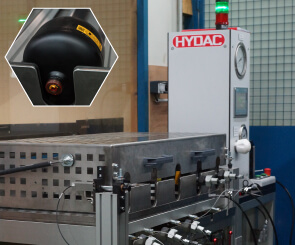 Hydrokit s’est muni d’un banc HYDAC pour faciliter les opérations de gonflage/dégonflage des accumulateurs. Un outil devenu indispensable en termes de sécurité, de qualité et de productivité. Au total, 200 accumulateurs sont gonflés/dégonflés par mois dans notre atelier.