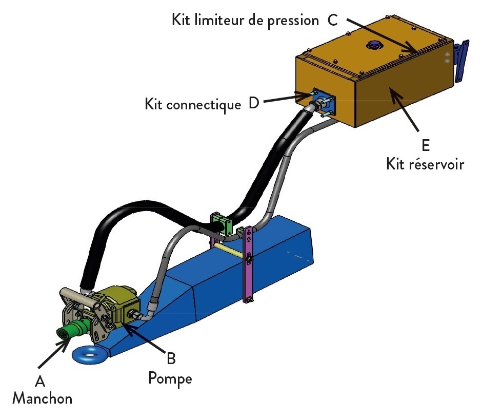 4 - Votre remorque ne possède pas de compresseur, réservoir : Choisissez le kit réservoir (Repère E)