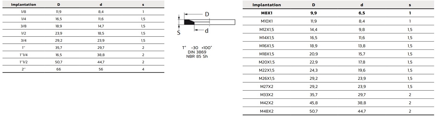 Infos supplémentaires joint plat pour forme R 1/8G et M10X100 Joint plat NBR pour taille G1/8 et M10x100 JTP018R1010
