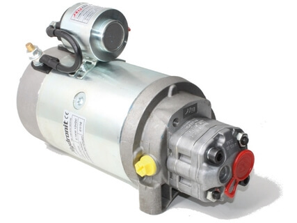 - Ein Hydraulikblock übernimmt alle Funktionen (Druckbegrenzer, Ventil, Druckschalter sind integriert).