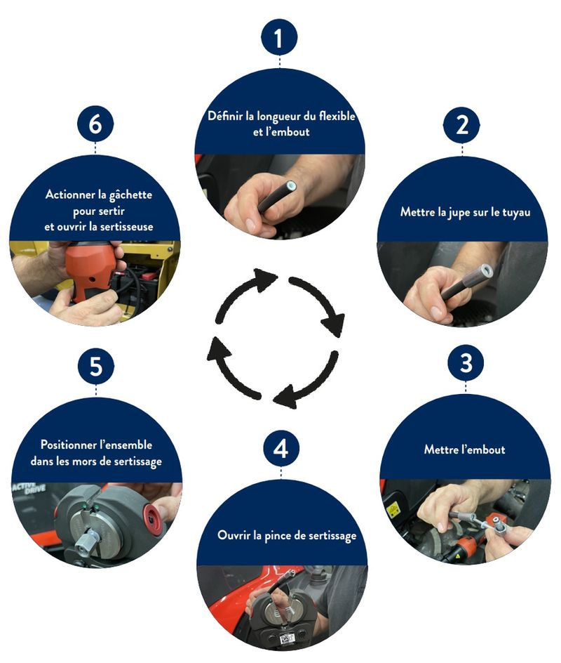 Dank der Verwendung eines tragbaren Crimpgeräts geschieht dies in sechs Schritten: