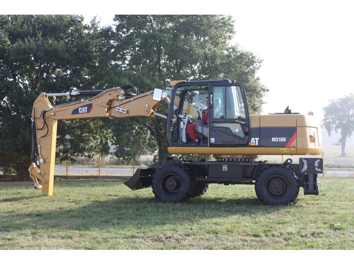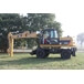 Las ruedas delanteras de la excavadora se dirigen mediante un interruptor basculante controlado eléctricamente situado en el joystick derecho del puesto de control