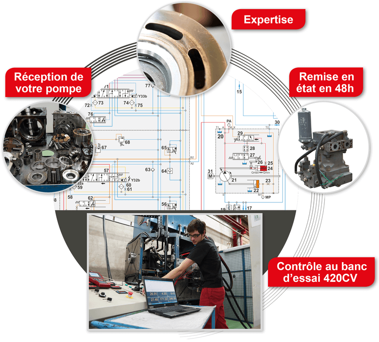 Hydrokit garantiza un control preciso de sus bombas y motores hidráulicos de pistones seleccionando los componentes originales para garantizar la duración de su producto. Aseguramos la metrología y el diagnóstico: