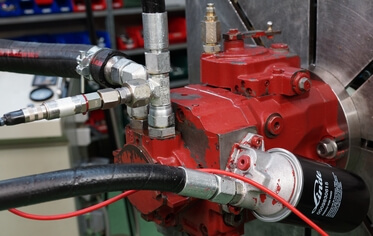 > Prueba de su componente hidráulico Linde en nuestro banco de pruebas.