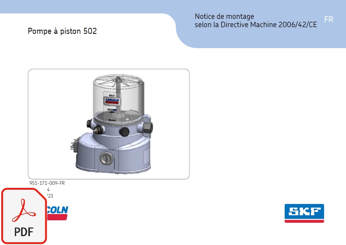 Infos supplémentaires POMPE SERIE P502 2 connecteur électrique avec câble de 10m (alim à gauche et signal bas à droite) Avec disque suiveur et signal de niveau bas Sans graisse Code SKF/Lincoln : P502-1XLF-1K6-24-2A1.10-00 Code : 658-41218-2 Pompe à graisse série P502 24V - Sans carte - Avec niveau bas P50224VB