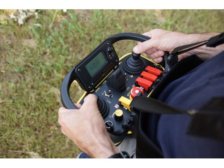 Machine entièrement radio-commandée (démarrage moteur à distance, commande de toutes les fonctions).